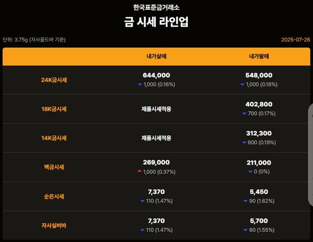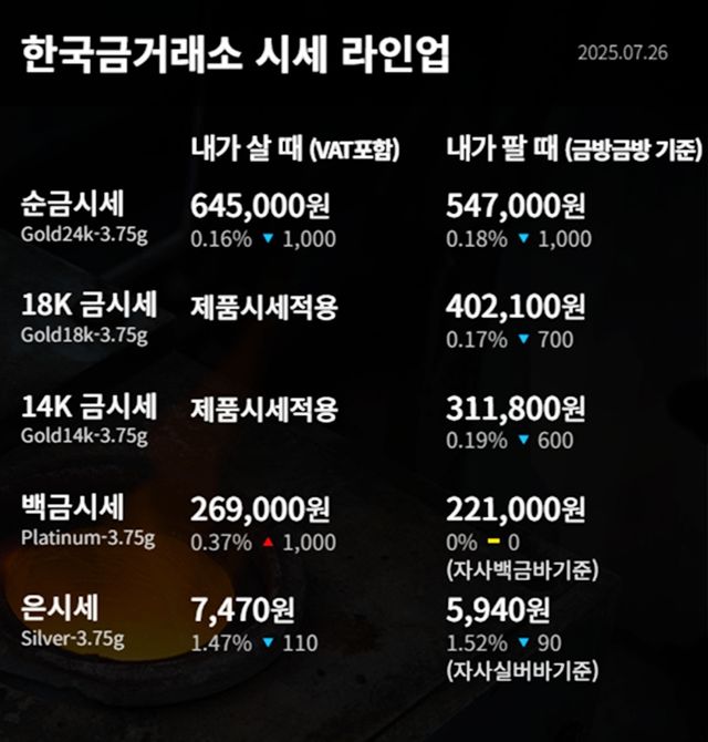 순금(24K) : 매입가 64만 5000원 / 매도가 54만 7000원