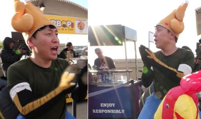 그런가 하면 이날 송정훈 보스와 컵밥을 공동으로 경영하고 있는 덕 대표는 미국인들에게 낯선 양념치킨을 판매하기 위해 치킨 탈을 쓴 채 축구 경기장을 종횡무진 누빈다. 덕 대표는 연봉 23억의 글로벌 금융회사에 재직했던 미국 최상위의 엘리트. 학사모 대신 닭벼슬을 뒤집어쓴 채 축구 경기장 앞에서 치킨 댄스를 선보이자 전현무와 박명수는 박수를 치며 웃음을 터트린다. 덕 대표의 모습에 금세 사람이 모이자 전현무는 “역시 뻔한 게 중요하다”라며 감탄하고 박명수는 “놀랍다”며 극찬한다. 이에 송정훈은 “정답은 열정이다”라고 자신한다.