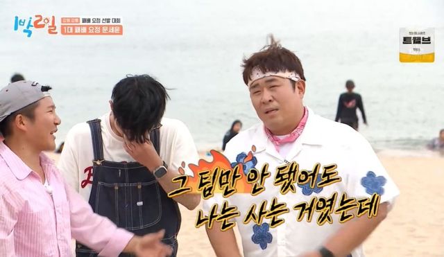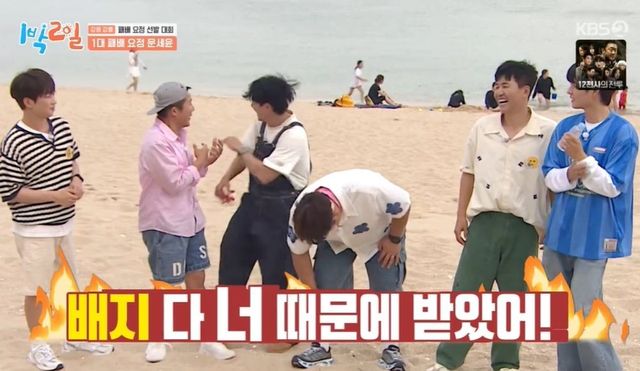 첫 게임에서 패배한 이준 팀. 유선호는 “방금 게임은 세윤 형이 못했다”라고 진단했다. 조세호는 “‘1박 2일’에서 패배해서 고생하는 모습은 예능 신이 도와주는 거다. 예능인 입장에선 부럽다고 볼 수 있는 거다”라고 했고, 딘딘은 “지난 제주 편에선 이준 형이 방송 면에선 이긴 거다”라고 말해주었다. 문세윤은 “그걸 억지로 하면 걸린다. 이준은 진짜 모자란 거다”라고 했고, 김종민은 “얘는 티가 안 나잖아. 얘는 진짜야”라고 말해 웃음을 자아냈다.