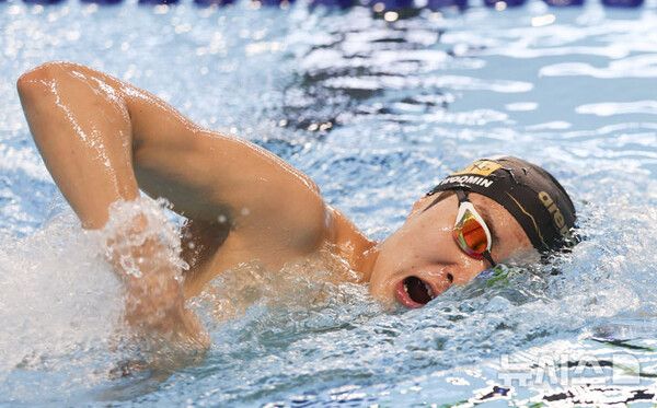 김우민의 남자 자유형 400m 개인 최고 기록은 지난해 6월 마레 노스트럼 대회에서 우승할 때 작성한 3분42초42다.