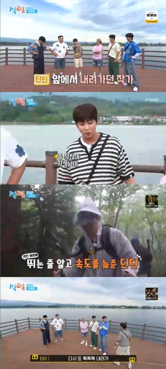 이날 딘딘은 지난 제주 한라산 등반 촬영의 비하인드 스토리를 전하며 작가 얘기를 했다.