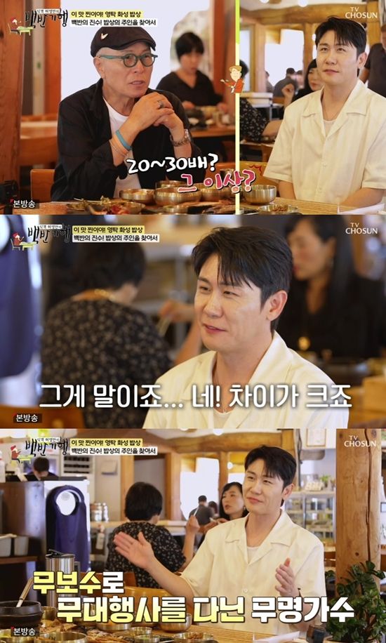 허영만은 "그렇다"는 영탁의 대답을 듣곤 "20~30배 차이 나냐. 혹은 그 이상이냐"고 질문을 던졌다.