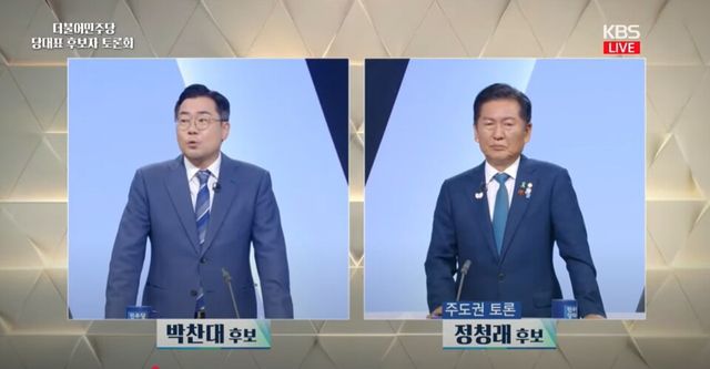 정 후보와 박 후보는 이날 저녁 서울 여의도 한국방송(KBS)에서 신관 공개홀에서 열린 두번째 민주당 당대표 후보자 TV토론회에서 이같이 밝혔다.