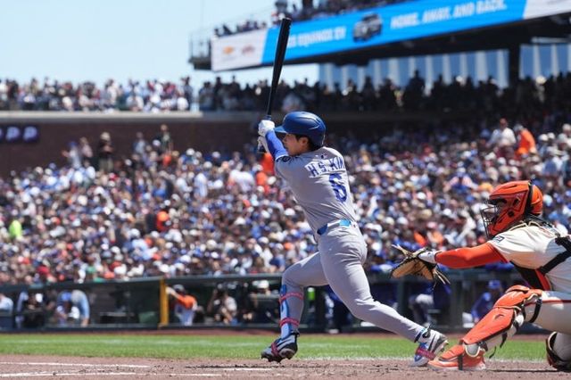 이날 경기에선 다저스 1번 지명타자로 선발 출전한 오타니가 1회초 선두 타자 홈런을 때렸다.