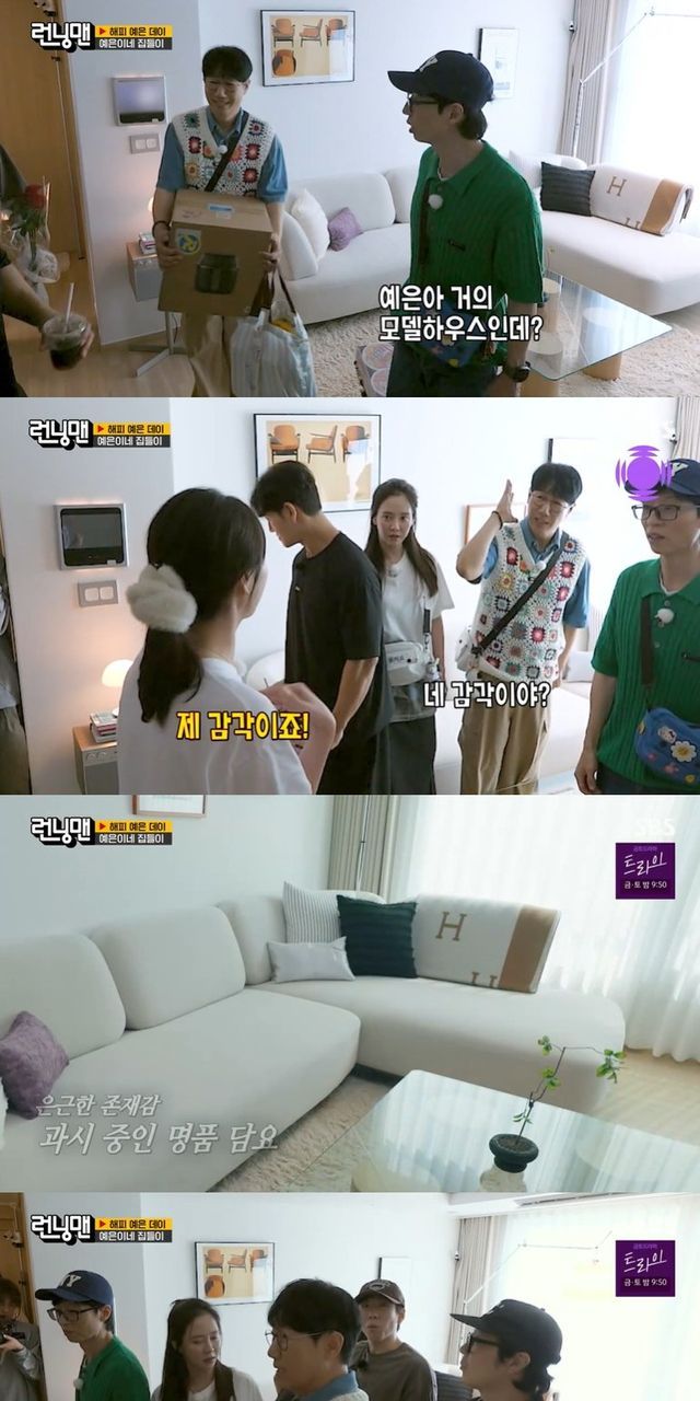 이에 지예은은 "제 감각"라고 답했고, 김종국은 "저 에르메스는 뭐냐"면서 소파에 걸려 존재감을 뽐내는 에르메스 담요를 언급했다.