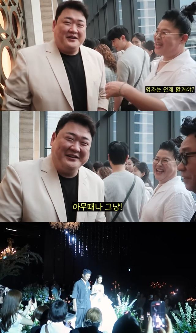 (엑스포츠뉴스 정민경 기자) 김준호 김지민 결혼식에 참석한 이영자가 결혼 관련 질문 폭격을 맞았다.