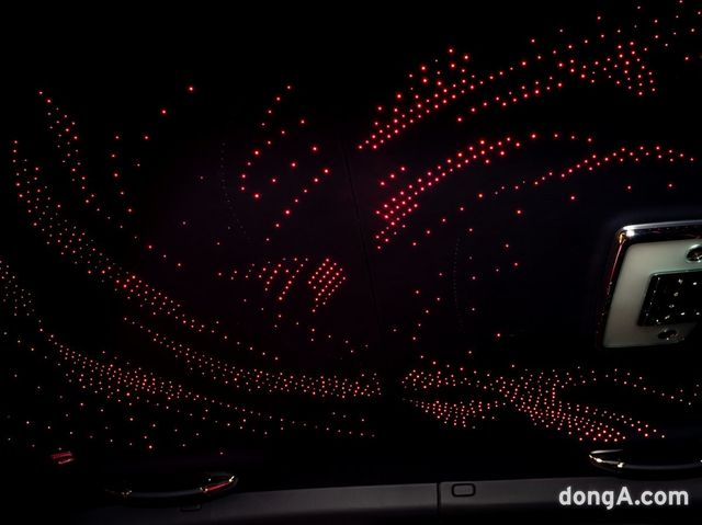 실내는 앞좌석 블러싱 핑크, 뒷좌석 네이비 가죽 조합으로 구성된다. 앞좌석에는 10만7000개의 미세 천공으로 구름 무늬를 새긴 ‘플레이스드 퍼포레이션’ 기법이 적용됐다. 스타라이트 헤드라이너에는 실큰 스피릿과 흰색 유성, 은은한 조명이 어우러져 환상적인 실내를 연출한다.