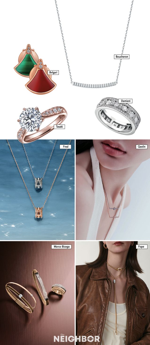 부쉐론의 아이코닉 컬렉션인 콰트로 그로그랭은 메종의 유산을 계승한 도시 감성의 그래픽 디자인이 특징이다. 부쉐론은 링과 클립으로 구성된 기존 컬렉션에 옐로 골드와 화이트 골드 버전의 네크리스, 브레이슬릿, 스터드 이어링을 더해 더욱 풍성한 컬렉션을 완성했다.