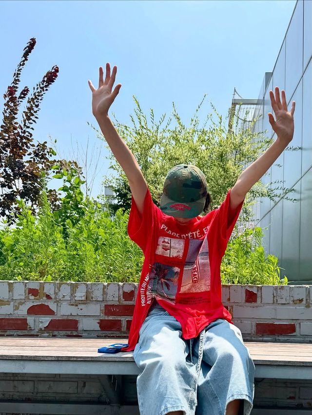 멋쁨의 정석 나나야 말로 일상에서 가장 많은 프린트 룩을 보여주는 스타 중 한 사람. 데일리 룩 착장마다 힙함이 묻어나는 그녀의 패션에는 다양한 프린트가 늘 들어있다. 가녀린 몸매를 감추는 듯하지만 더 돋보이게 하는 박시한 프린트 티셔츠 속에서도 마찬가지. 얼마 전 공개한 원 밀리언 댄스 스튜디오에 들른 나나의 박시한 레드 티셔츠에는 볼드한 사진 프린트가 시선을 사로잡는다. 여기에 루즈 핏 버뮤다 팬츠와 볼캡을 더해 쿨함을 더했으니 나나처럼 장신의 팬이라면 도전해볼 만 하다.
