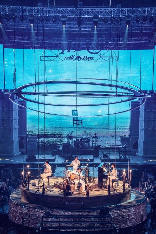 앙코르 타임에는 고래가 공연장 곳곳을 날아다니는 연출 속에서 '싱 미(Sing Me)' '웰컴 투 더 쇼(Welcome to the Show)'를 불렀다. 마지막으로 네 사람은 "여러분께 꼭 들려드리고 싶었다"며 미발매곡 '별들 앞에서'를 깜짝 공개했다.