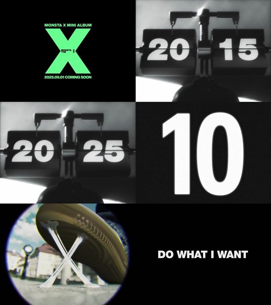공개된 영상은 2015년부터 2025년까지, 데뷔 10주년을 맞이한 몬스타엑스의 시간을 상징적으로 보여주는 플립 시계 장면으로 시작된다.