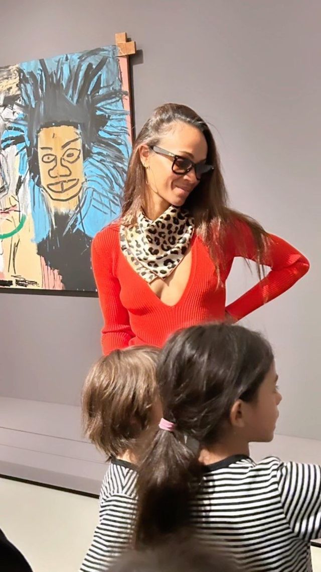 조 샐다나의 레드 활용법은 사석에서도 빛을 발해요. 깊게 파인 레드 브이넥 니트엔 레오파드 스카프를 더해 시선을 자연스럽게 분산시켰고, 톤이 다른 핑크 스커트를 매치한 룩에서는 의외의 발랄함이 느껴졌습니다.