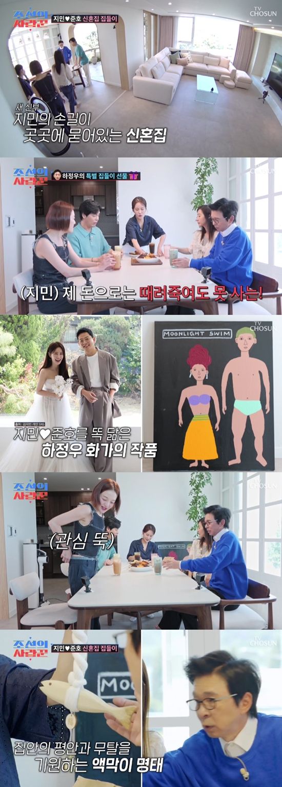 이어 '조선의 사랑꾼' 식구들은 준비한 선물을 줬다. 황보라는 하정우의 그림을 선물했다. 하정우는 '준호형님 지민 결혼을 매우 축하합니다. 이 그림 속 두 사람이 꼭 준호형과 지민 같은 느낌에 이 작품을 선택했다. 늘 행복하시고 건강하세요'라는 친필 편지까지 남겼다.