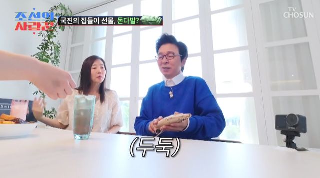 황보라는 "무엇보다 김국진 선배님 봉투 한가득 갖고 오셨는데, 오늘의 하이라이트다"라며 분위기를 띄웠다. 김지민은 "만져봐도 되냐. 엿 같은 느낌이다"라며 만져보더니 "푹신하다. 돈 같은데"라며 눈을 번뜩였다.