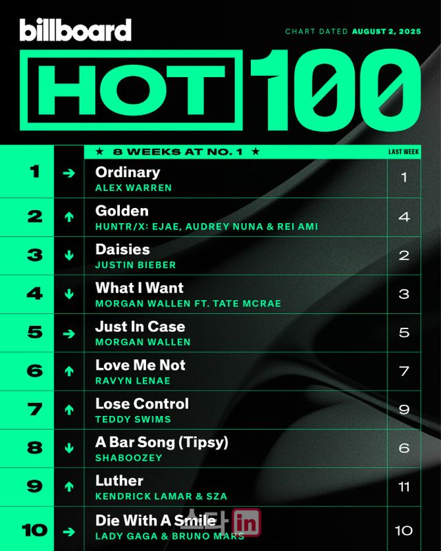'케데헌' OST '골든', 美 빌보드 핫100 2위… 자체 최고