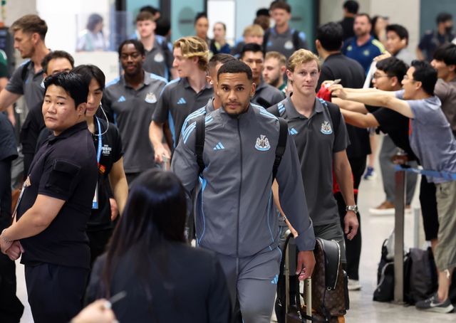 뉴캐슬 유나이티드, 입국 (영정도=연합뉴스) 윤동진 기자 = 잉글랜드 프리미어리그 뉴캐슬 유나이티드(잉글랜드)가 28일 인천국제공항 1터미널을 통해 입국하고 있다. 뉴캐슬은 30일 오후 8시 수원월드컵경기장에서 팀K리그와 친선경기를 치른다. 2025.7.28 mon@yna.co.kr/2025-07-28 21:37:23/ <저작권자 ⓒ 1980-2025 ㈜연합뉴스. 무단 전재 재배포 금지, ai 학습 및 활용 금지>