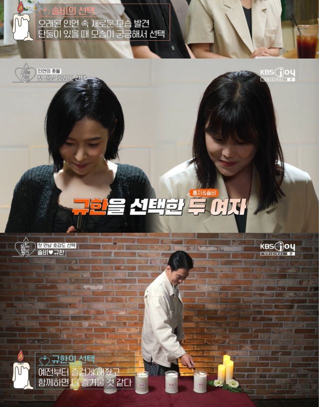 자기소개 이후 진행된 첫 만남 호감도 선택에서 솔비와 이규한은 서로를 선택해 눈길을 끌었다.