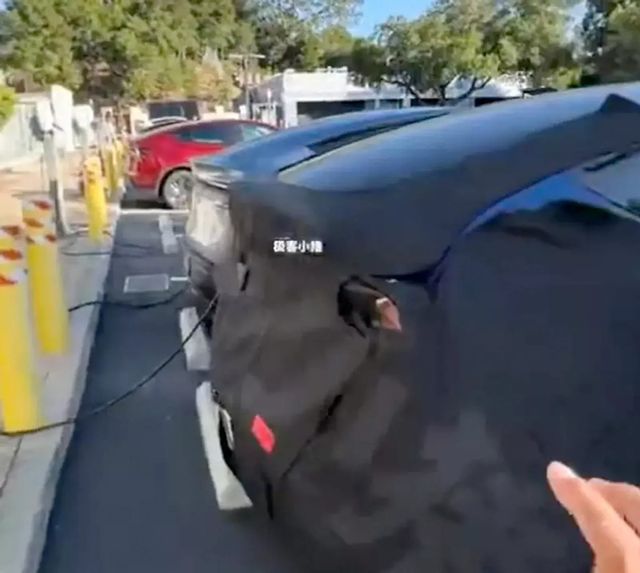 | ▲ 주차된 채 포착된 테슬라 보급형 모델 Y <출처=웨이보 ‘Geek Piggy/Garage 42’> |