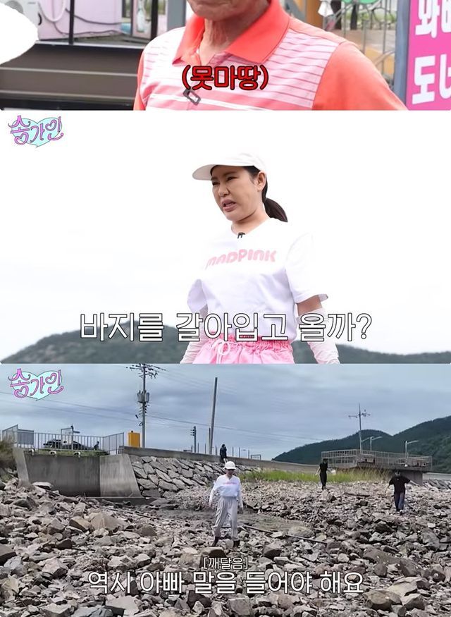 이후 송가인은 반바지 차림 그대로 바닷가로 향했다. 그러나 작업 중간 "바지를 갈아입고 올까?"라며 반바지에 불편함을 토로해 웃음을 자아냈다.