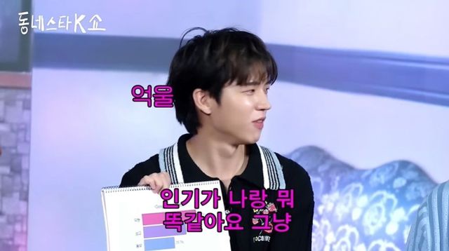 그런 가운데 조나단은 인피니트 ‘Dangerous’의 파트 분배를 보여주며 “우현이 몇 명 멤버들 분량 합친 거랑 거의 비슷하다. 소문으로 파트 0초 받은 형도 있다고 들었다”라고 했다. 그러자 남우현은 “그렇다면 성열이다. 0초인데 왜 재산은 나랑 비슷하지?”라며 “인기가 나랑 똑같다. 이런 게 열받는다. 이게 케이팝(K-POP)이다. 내가 이렇게 많이 하는지 몰랐네”라고 울분을 토해내 웃음을 안겼다.