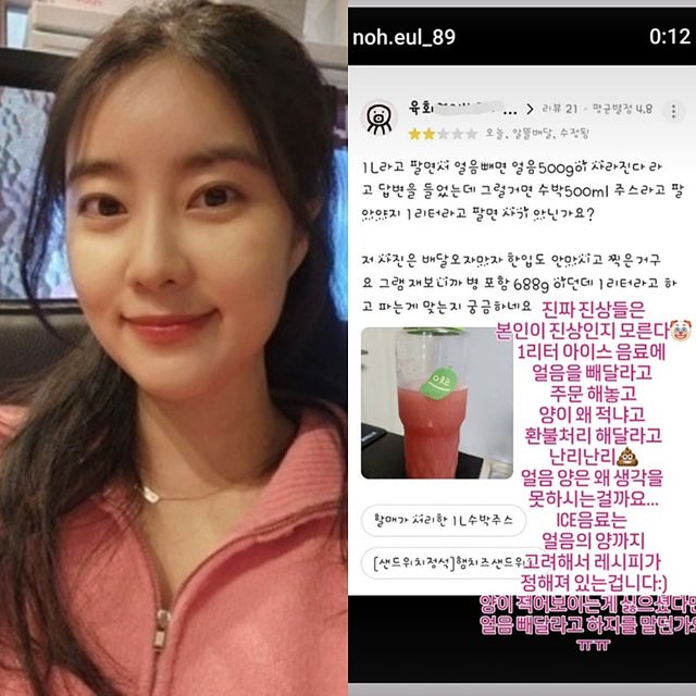 28일 노을은 개인 SNS를 통해 “진짜 진상들은 본인이 진상인지 모른다. 1리터 아이스 음료에 얼음을 빼달라고 주문 해놓고 양이 왜 적냐고 환불 처리해달라고 난리난리”라고 적었다.