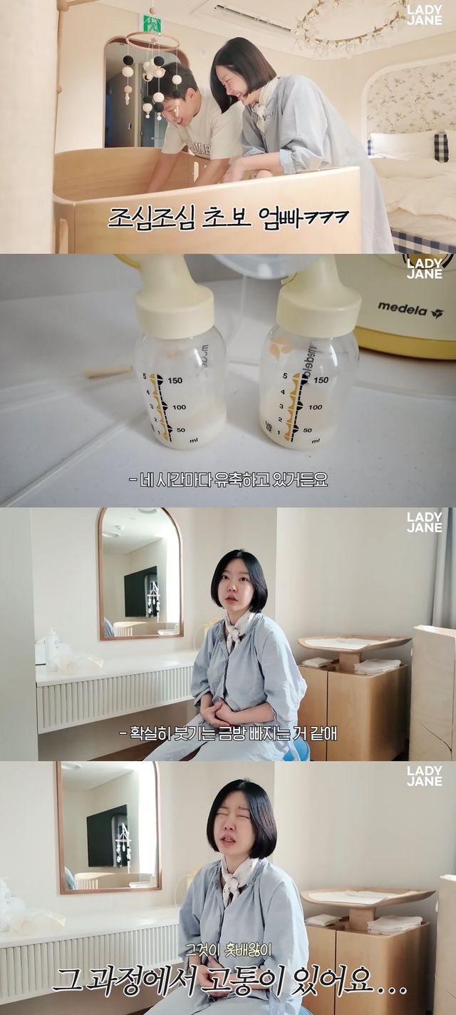레이디제인은 "아침에 일어나자마자 모유 수유를 위해 유축을 했다. 저는 조리원에서 단유를 하고 가려고 4시간마다 유축하고 있다"라고 밝혔다.