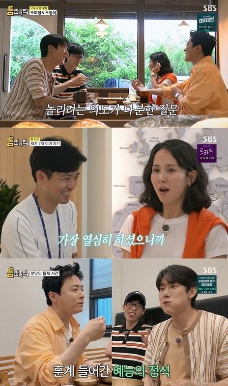 29일 방송된 SBS '틈만 나면,' 32회에서는 2MC 유재석, 유연석과 함께 '틈 친구' 조여정, 조정석이 분당 일대를 방문해 쉴 틈 없는 티키타카를 자랑했다.