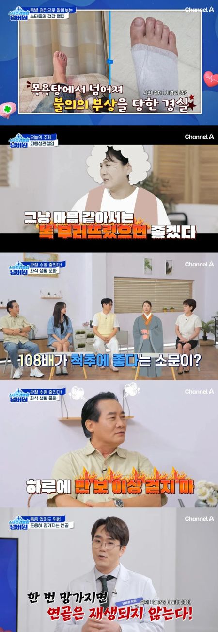 오는 30일 방송 예정인 채널A ‘스타건강랭킹 넘버원’에서는 국내 만성질환 1위로 꼽히는 퇴행성관절염의 위험성에 대해 살펴본다. 퇴행성관절염은 환자 수만 4백만 명에 달하며, 암 다음으로 한국인이 가장 두려워하는 질환이라는데, 누구에게나 찾아오는 만큼 더 관리가 필요하다.