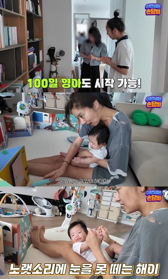 손담비가 "100일 때부터 해도 상관 없냐"고 묻자 담당자는 "100일 영아도 상관 없다. 계속 보여주고 들려주면 된다"고 얘기했다.