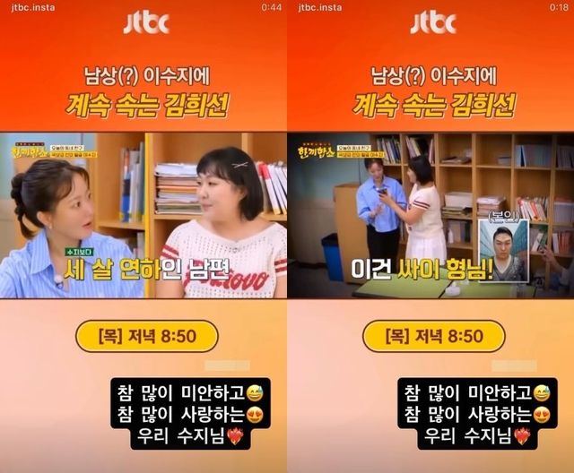 지난 24일 김희선이 출연 중인 JTBC '한끼합쇼'에는 이수지가 게스트로 등장해 세 살 연하 남편을 언급했던 바.