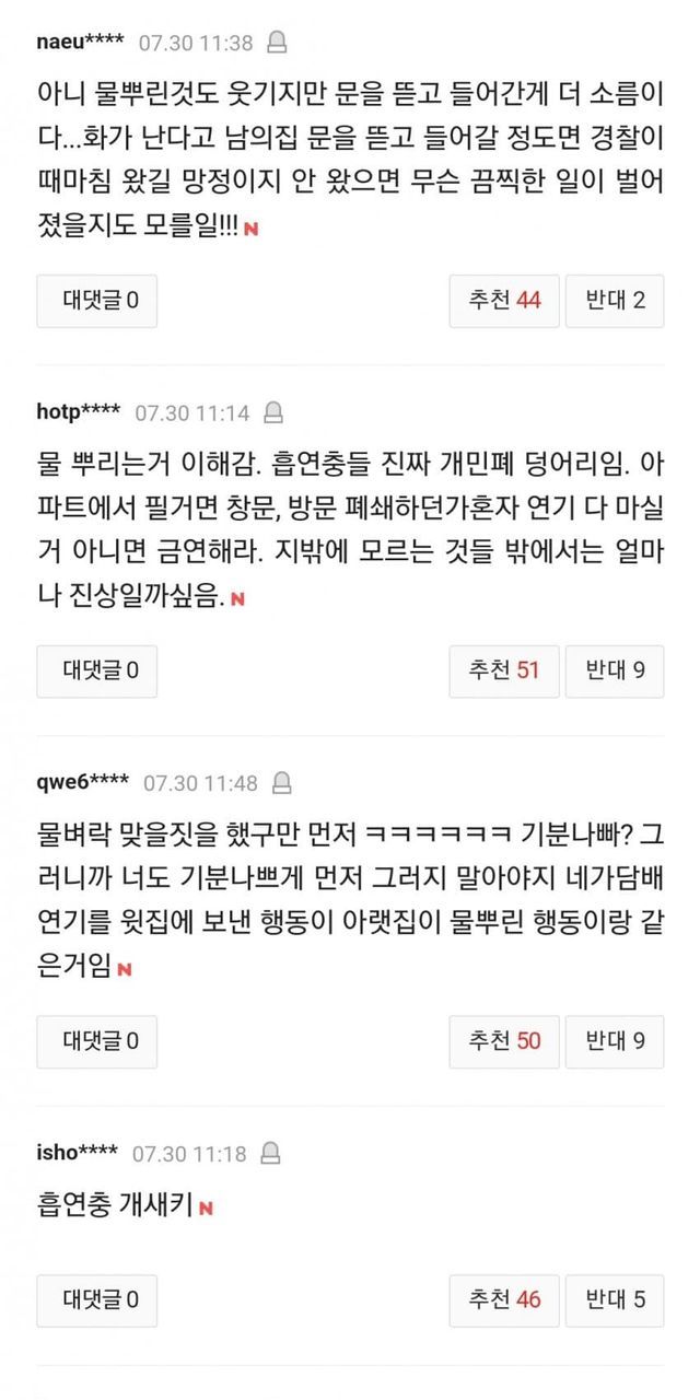 '베란다 흡연' 아랫집에 물 뿌린 사람 vs 쳐들어온 사람
