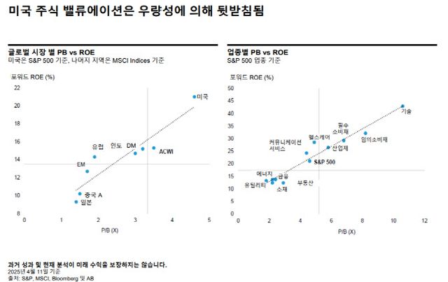 미국 주식이 다른 나라보다 밸류에이션이 높아서 비싸보이지만, 수익성·성장성도 다른 시장 대비 확연히 높은 만큼 유망한 업종을 선별해 투자해야 한다는 의견이다.
