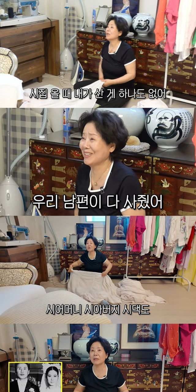 그는 혼수 비용을 하나도 내지 않고 결혼을 했다고. 선우용여는 "우리 남편이 다 사줬다. 우리 엄마 아부지 선물, 시어머니 시아버지 시댁도 우리 남편이 다 샀다. 엄마가 반대하니까 '혼수 안 한다' 그랬더니 남편이 '내가 다 할테니까 걱정하지 마'라고. 그리고 자기가 다 했다"고 밝혔다.