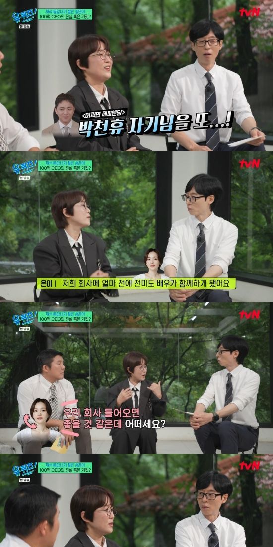 30일 방송된 tvN '유 퀴즈 온 더 블럭'(이하 '유퀴즈')에서는 송은이가 게스트로 출연한 가운데 박천휴 작가를 영입하게 된 사연을 밝힌 장면이 전파를 탔다.