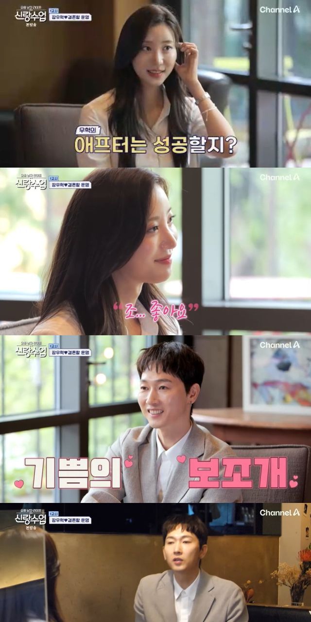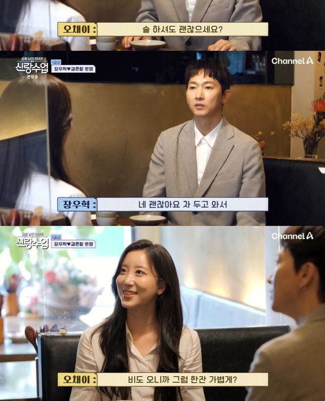 30일 방송된 채널A '요즘 남자 라이프-신랑수업'(신랑수업) 174회에서는 장우혁과 이다해의 절친한 후배 배우 오채이의 소개팅 현장이 공개됐다.