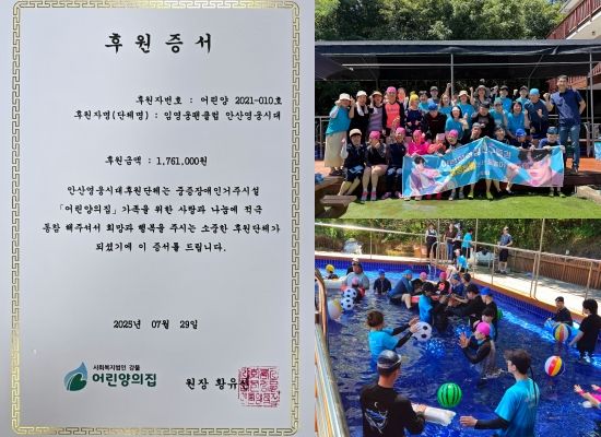 임영웅 팬클럽 '안산영웅시대'는 지난 28일 중증장애시설 '어린양의집'에서 네 번째 '첨벙첨벙 물놀이' 봉사 활동을 진행했다고 밝혔다.