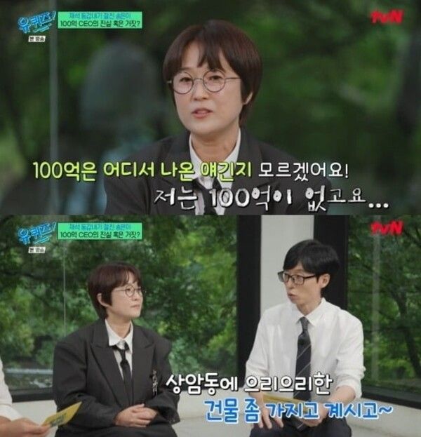 하지만 송은이는 자신을 따라다니는 '100억 CEO' 수식어에 대해 "어디서 나온 얘기인지 모르겠다. 100억 없지만, 기분 나쁘지 않아서 그냥 놔뒀다"라고 솔직하게 고백하며 웃음을 안겼다. 조세호가 "사옥이 70억 정도 한다더라"고 하자, 송은이는 "투자 목적이 아니다. 건물 어디서든 콘텐츠를 찍을 수 있게 시설에 투자했다고 보면 될 것"이라고 설명하며 콘텐츠 제작에 대한 열정을 드러냈다.