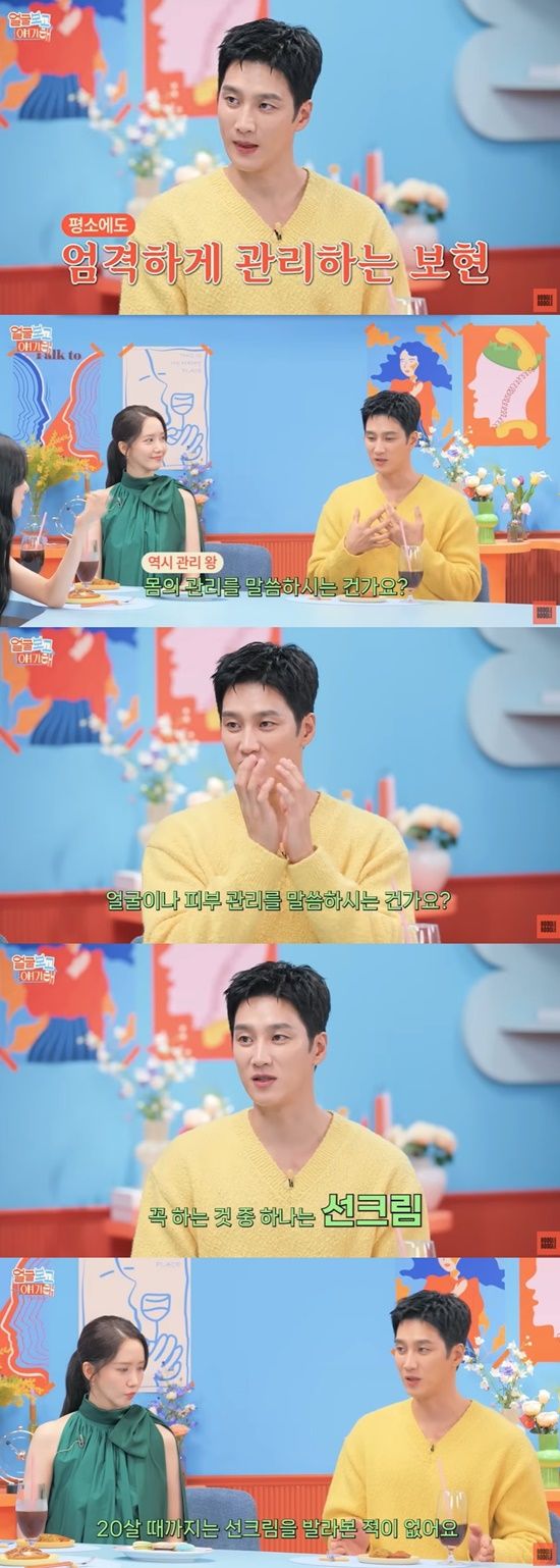 이에 티파니 영과 임윤아는 "둘 다다. 저희에게 관리라고 하면 (전체를) 다 말하는 것이다"라고 웃었고, 안보현은 "얼굴에 대한 관리에서 꼭 하는 것은 선크림 바르기다. 제가 운동을 오래 해서 20살 때 까지는 뛰면 땀이 눈에 들어가니까, 선크림을 발라본 적이 없다"고 말했다.