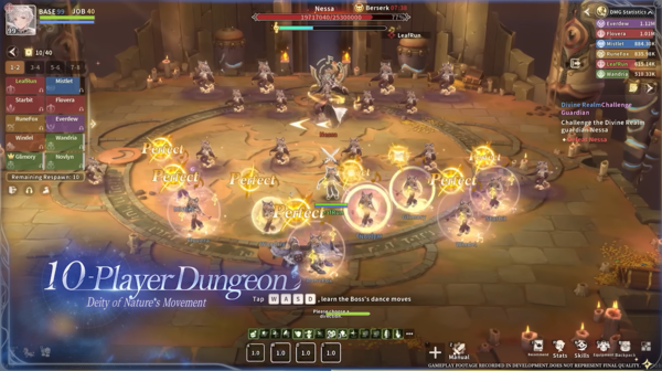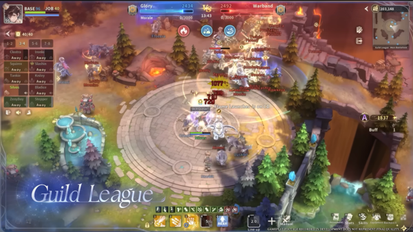 콘텐츠 부문에서는 10인 규모 던전과 대규모 길드 리그가 소개됐다. 10인 협동 던전은 기존 ‘라그나로크’에서는 등장하지 않았던 새로운 콘텐츠로, 단순한 장판 피하기를 넘어 보스의 움직임을 따라하거나 특정 오브젝트, 타이밍에 대응하는 등 이용자들의 긴밀한 협력이 강조됐다. 길드 리그에서는 수많은 이용자들이 난전을 펼치는 장면부터 공성추를 대동한 공성전이 예고되는 등 스케일이 큰 전장을 표현했다.