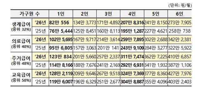 보건복지부, 2026년도 기준 중위소득 6.51% 역대 최대로 인상