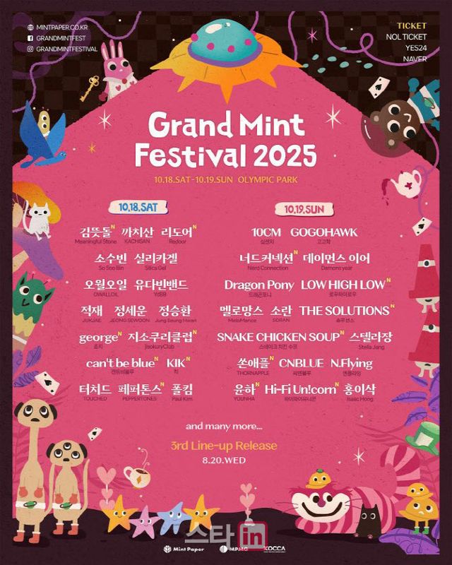 ‘GMF 2025’는 10월 18~19일 양일간 서울 송파구 올림픽공원에서 펼쳐진다. 앞서 베일을 벗은 1차 라인업을 통해 까치산, 소수빈, 실리카겔, 오월오일, 유다빈밴드, 적재, 정세운, 정승환, 터치드, 폴킴, 10CM, 고고학, 데이먼스 이어, 드래곤 포니, 멜로망스, 소란, 스텔라장, 씨엔블루, 엔플라잉, 홍이삭 등의 출연 소식이 알려진 바 있다.
