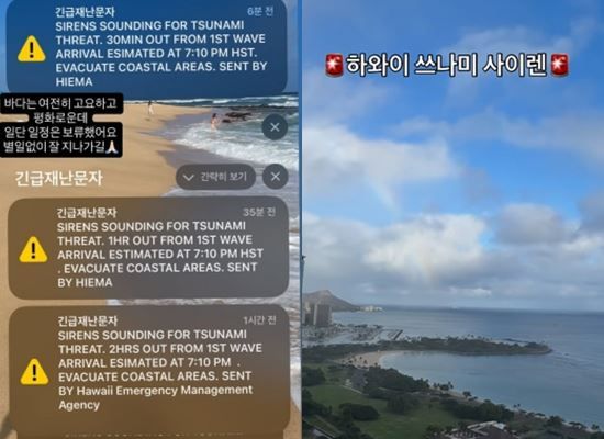 (엑스포츠뉴스 김예은 기자) 하와이 쓰나미 경보에 스타들도 놀란 가슴을 쓸어내렸다.