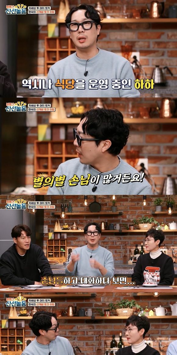 하하와 팽현숙 역시 MBC '볼빨간 신선놀음'에서 진상 손님과 관련한 에피소드를 공개했다. 하하는 "식당일을 하는데 별의별 손님들이 많다"며 "손님들하고 대화하는 걸 좋아하니까 (대화) 하다 보면 어느 순간 제 엉덩이에 손이 가 있다"고 밝혔다.