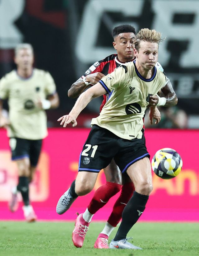 바르셀로나는 31일 서울월드컵경기장에서 열린 ‘FC 바르셀로나 2025 아시아 투어 에디션’ 1차전에서 K리그1 소속 FC서울에 7-3으로 크게 이겼다. 이날 선발 출전한 더용은 45분을 소화한 뒤 후반전 시작과 함께 교체됐다.
