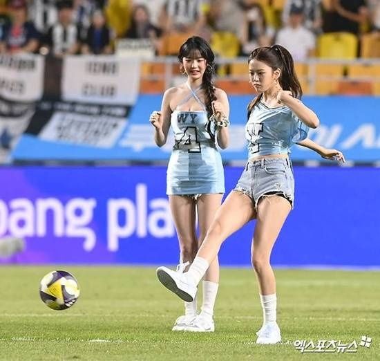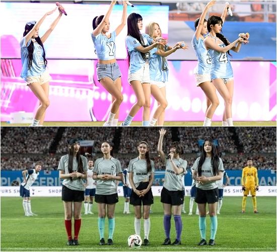 그런 반면, 지난해 뉴진스는 서울월드컵경기장에서 열린 경기에서 시축 및 무대를 진행하며 TPO에 맞춘 축구 유니폼 스타일링으로 주목을 받았다. 활동성 좋은 반바지와 운동화, 여유 있는 핏의 상의를 매치해 '시축 룩'의 전형을 보여줬다는 평가를 받았다.