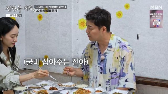 굴비를 바르는 전현무를 보던 원진아는 굴비를 잡아줬고, 전현무는 “매너 쩐다”라며 크게 감동했다. 그러더니 곽튜브를 향해 “너랑 2년 하면서 한번도 이런 걸 받아본 적이 없다. 너 (굴비) 씹을 때 진아는 잡아 준다”라고 타박했다. 이에 진아 역시 “너만 입이야?”라고 거들어 웃음을 자아냈다.