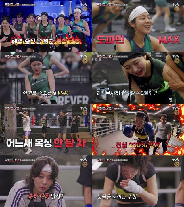 1일 방송되는 tvN 예능 ‘무쇠소녀단2’에서는 무쇠소녀단 멤버들이 복싱 응용 기술을 익히고, 국내 최대 규모의 글로벌 피트니스 레이스에 출전하는 모습이 그려진다. 이날 네 사람은 체력과 정신력을 극한까지 끌어올리는 8개 종목 레이스에 도전하며 한층 더 강인한 복서로 성장해간다.