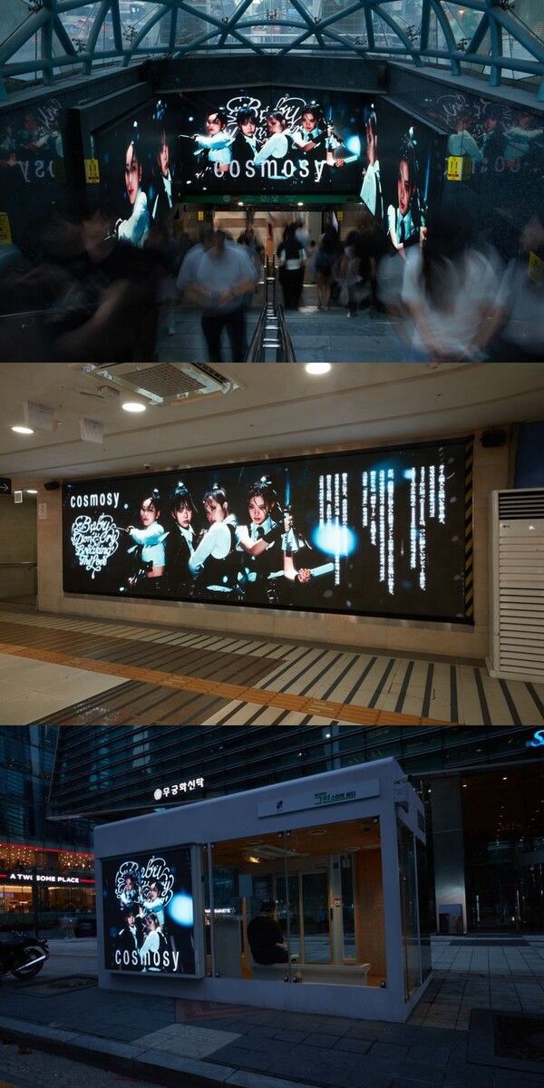 뉴시스 보도에 따르면, 1일 소니뮤직코리아에 따르면 코스모시는 최근 강남·마곡·합정·건대 등 서울 주요 도심에서 대규모 옥외 광고 캠페인을 펼치고 있다. 코스모시의 비주얼과 세계관을 시각적으로 구현했다.