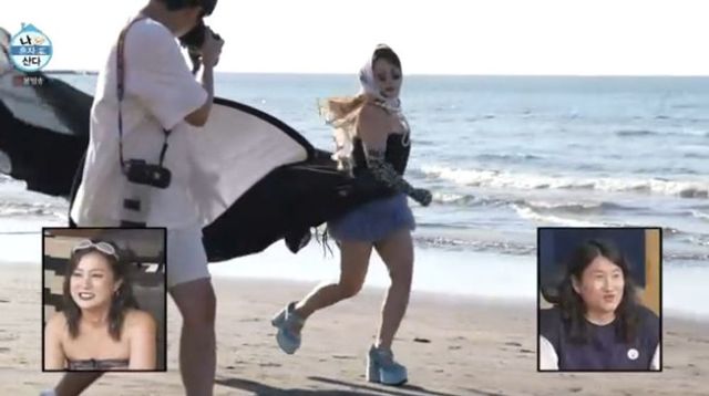 웨딩화보 느낌을 내며 해변을 걸어보는 박나래의 모습에 기안84는 “왜 이렇게 야인시대 같냐”고 말해 폭소를 더했다.