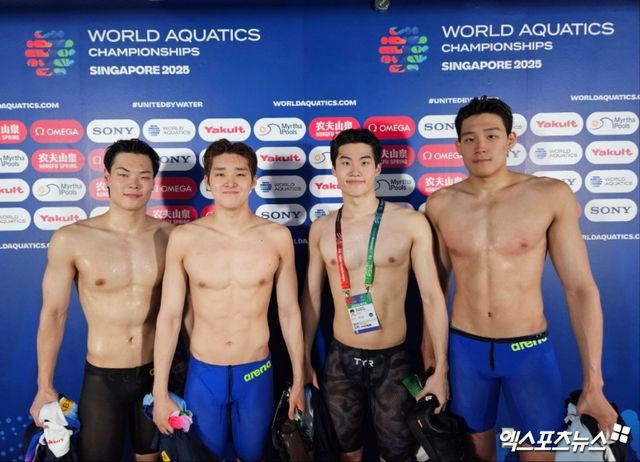 (엑스포츠뉴스 칼랑(싱가포르), 유준상 기자) 한국 경영 대표팀이 국제수영연맹(World Aquatics) 싱가포르 세계수영선수권대회 남자 계영 800m 예선을 성공적으로 마무리했다.